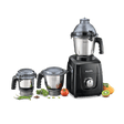 It has a powerful 1000 watts motor with double ball-bearings ( for both ends of the motor ) providing long life along with trouble free performance. Its 25,000 R.P.M. operation processes the food in short time with little heat generation that helps retain the natural flavours of the food. The self-aligning jars & motors have been provided for enhanced safety. The bush in the precision engineered cutter assemblies for mixer and grinder are pre-loaded with oiled felt for longer life. The cutter blades are made of high tensile stainless steel and machined in exact shape at precise angles for high performance. The model comes with three jars attachments: –