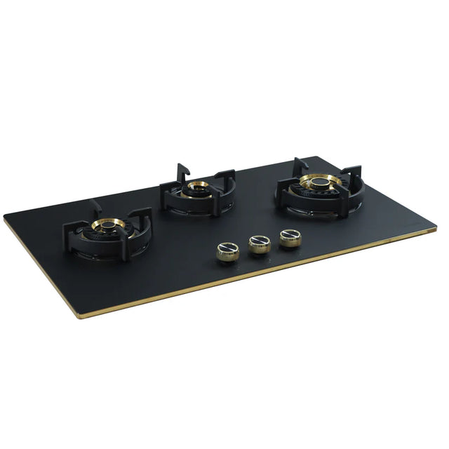 | Material | Brass Burners with 8 mm Thick Black Toughened Glass Top (Matte Finish) |