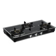 The toughened black glass top adds a sleek and elegant look to your kitchen while offering excellent strength and resistance to heat and scratches. Its manual ignition system provides reliable operation and easy use. The heavy-duty pan supports offer stable support for all cookware types, while ergonomic metal knobs ensure smooth and precise flame control.