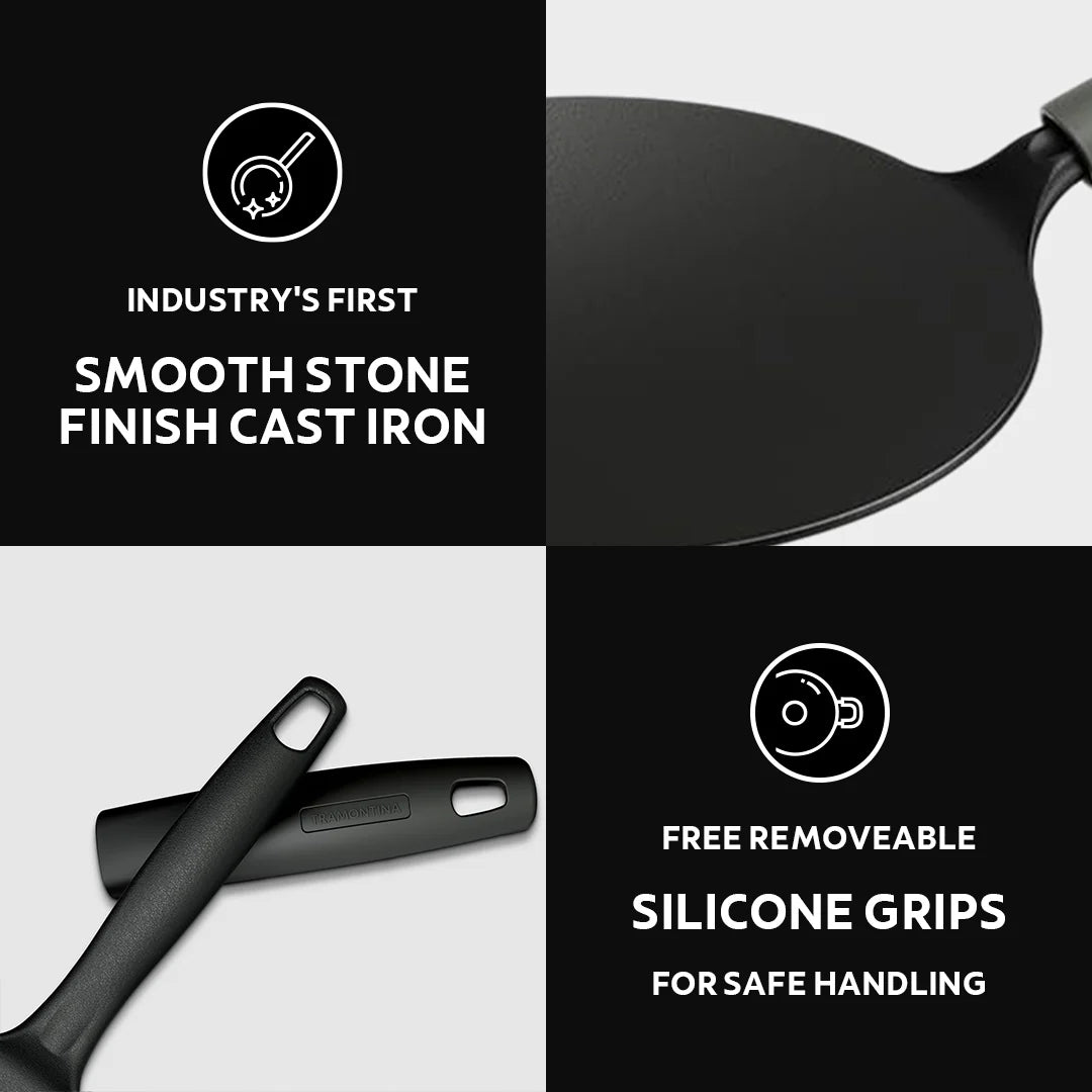 Upgrade your cooking with Tramontina Titanex—where tradition meets quality. Get yours today and enjoy the art of making delicious, homemade rotis! Elevate your cooking experience with the Tramontina Titanex 30 cm Pre-Seasoned Cast Iron Roti Tawa. Designed for both culinary enthusiasts and everyday cooks, this versatile tawa is perfect for making delicious, perfectly cooked rotis, parathas, and more. Key Features: Non-Toxic Construction: Made from high-quality, non-toxic cast iron, ensuring a safe and healthy cooking surface for you and your family. Easy Hold Non-Slip Heat-Resistant Grip: The innovative non-slip grip provides a secure and comfortable hold, allowing you to maneuver the tawa easily, even at high temperatures. Cook with confidence and comfort! Superior Stone Finish: The unique stone finish enhances the natural non-stick properties of the tawa, making it easier to cook and clean while imparting an authentic flavor to your dishes. Excellent Heat Retention & Even Heating: Enjoy superior heat retention that ensures even cooking and browning. This means perfectly cooked rotis every time, with a delightful golden crust and soft interior. Durable & Easy to Clean: Designed for longevity, this cast iron tawa is built to withstand the test of time. Its easy-to-clean surface requires minimal maintenance—simply wipe it down after use, and it’s ready for your next culinary adventure. Product Description for Amazon Tramontina Titanex 30 cm Pre-Seasoned Cast Iron Roti Tawa Elevate your cooking experience with the Tramontina Titanex 30 cm Pre-Seasoned Cast Iron Roti Tawa. Designed for both culinary enthusiasts and everyday cooks, this versatile tawa is perfect for making delicious, perfectly cooked rotis, parathas, and more. Key Features: Non-Toxic Construction: Made from high-quality, non-toxic cast iron, ensuring a safe and healthy cooking surface for you and your family. Easy Hold Non-Slip Heat-Resistant Grip: The innovative non-slip grip provides a secure and comfortable hold, allowing you to maneuver the tawa easily, even at high temperatures. Cook with confidence and comfort! Superior Stone Finish: The unique stone finish enhances the natural non-stick properties of the tawa, making it easier to cook and clean while imparting an authentic flavor to your dishes. Excellent Heat Retention & Even Heating: Enjoy superior heat retention that ensures even cooking and browning. This means perfectly cooked rotis every time, with a delightful golden crust and soft interior. Durable & Easy to Clean: Designed for longevity, this cast iron tawa is built to withstand the test of time. Its easy-to-clean surface requires minimal maintenance—simply wipe it down after use, and it’s ready for your next culinary adventure. Why Choose Tramontina Titanex? The Tramontina Titanex 30 cm Pre-Seasoned Cast Iron Roti Tawa is more than just a cooking tool; it’s an essential part of your kitchen that enhances your cooking efficiency and flavor. Perfect for traditional Indian flatbreads and a wide range of other dishes, this tawa is a versatile, durable, and practical addition to your cookware collection. Why Choose Tramontina? With a legacy of 113 years of quality craftsmanship, Tramontina brings you cookware that not only enhances your cooking experience but also adds a touch of elegance to your kitchen. Our cast iron grill pan is durable, versatile, and designed to help you create delicious meals for family and friends