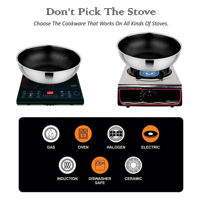 Induction & Gas Compatible: Works on all stovetops with excellent performance.