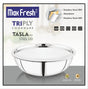 The Maxfresh Triply Tasla with Steel Lid (20 cm) is a versatile and durable cookware piece designed for efficient and healthy cooking. Constructed with triply stainless steel technology – a food-safe stainless steel inner layer, an aluminum core for uniform heat distribution, and an induction-compatible stainless steel outer layer – it ensures even cooking and energy efficiency. With a 20 cm diameter, this tasla is perfect for preparing curries, gravies, sautéed vegetables, and other everyday dishes. The sturdy stainless steel lid helps retain heat and aroma, while heat-resistant handles provide safe handling. Stylish, practical, and long-lasting, this tasla is ideal for modern kitchens.
