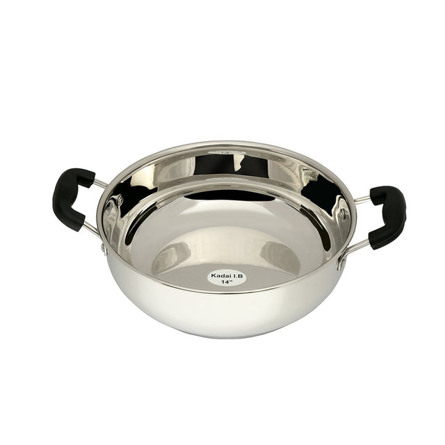 Stainless steel Kadhai from tuffware india. Made with highly durable stainless steel and comes with bake-lite handles to keep your hands cool while using it. Works on gas stoves as well as induction cook-tops. Great for indian kitchen's.