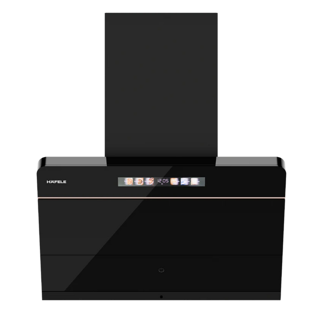 Experience advanced kitchen ventilation with the Hafele Teresa Neo I-75 Wall Mounted Chimney. Crafted with a modern inclined design and a stylish black glass finish, this 75 cm chimney brings both elegance and high performance to your cooking space. Featuring Auto Sense Technology, it intelligently adjusts suction levels based on your cooking intensity. The powerful 270W BLDC motor ensures a strong inlet side suction capacity of 1500 m³/hr, efficiently removing smoke and odors. With 10 speed settings, Turbo mode, and Smart Heat Auto Clean functionality, maintenance is effortless and operation is smooth through feather touch and gesture controls. An intuitive vibrant display and bright LED lighting further enhance your cooking environment. Backed by 2 years product warranty and 10 years on the motor, the Teresa Neo I-75 is a reliable and stylish addition to any modern kitchen.