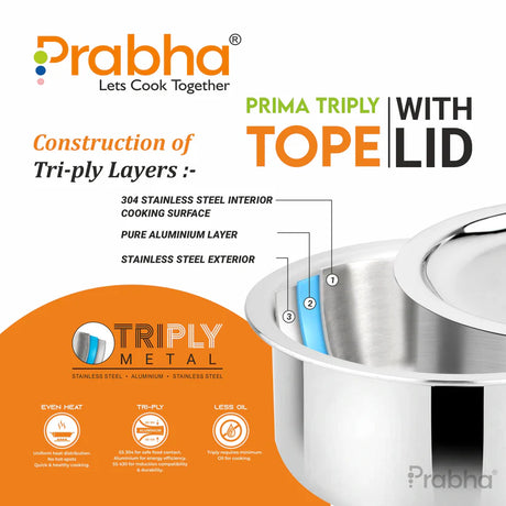 Prima Triply Capsule Bottom Kadhai Without Lid – 1.3L, 20cm