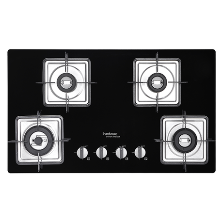 CTQ 63 4B 63cm Black Tempered Glass 4-Burner Gas Cooktop (Manual Ignition)
