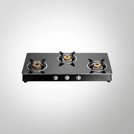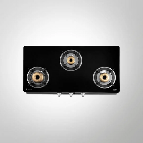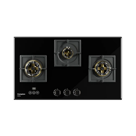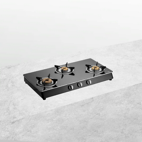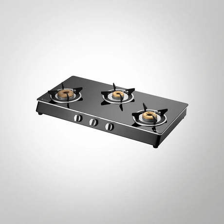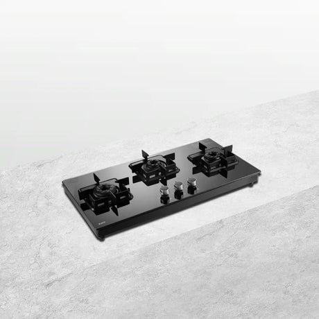 CTAI 77 3B – 3-Burner Auto Ignition Gas Stove | High Safety Valves | Black Tempered Glass
