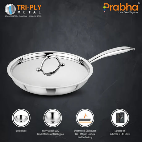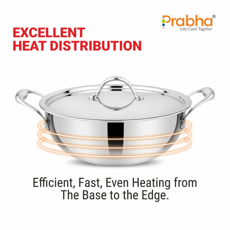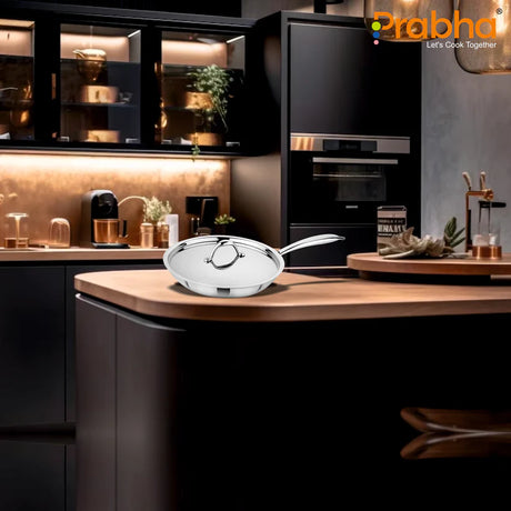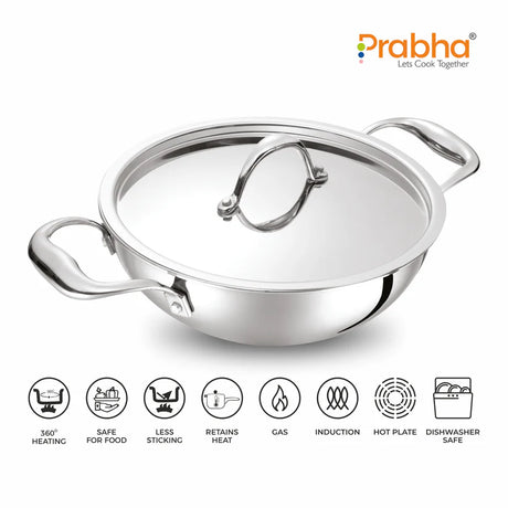Prima Triply Kadhai Flat Bottom With Lid – 1.4L, 18cm