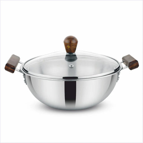 Elante Tri-Ply Kadhai With Glass Lid – 4.3L, 28cm