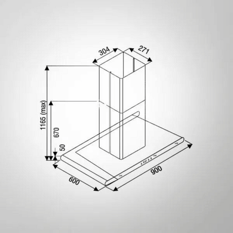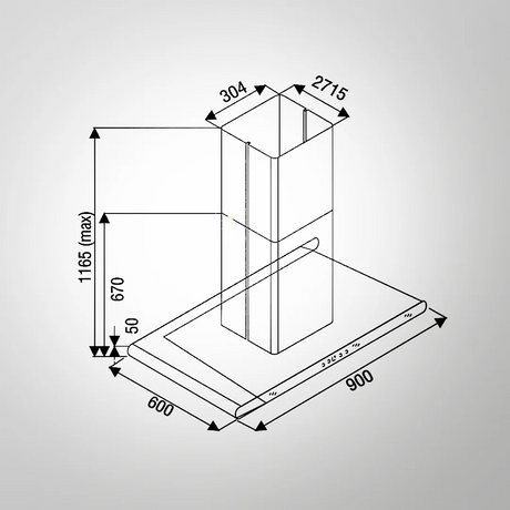 CHD-GAL90BFE-INX GrandArt 90cm Island Baffle Filter Chimney