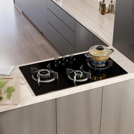 SensoSafe 78cm 3 Burner Built-In Gas Hob with 3D Brass Burners & FFD