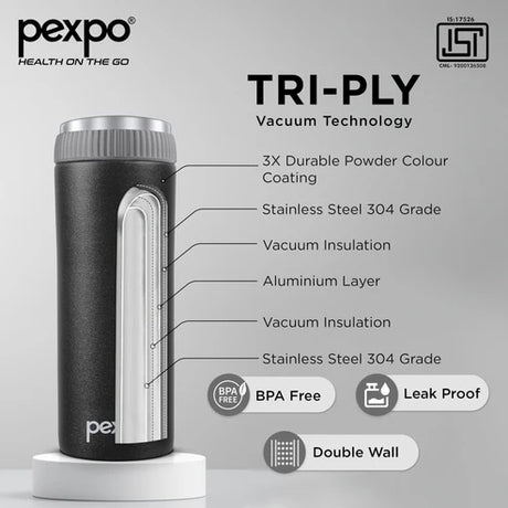 Pexpo Bosco Hot & Cold Water Bottle 900 ML Black