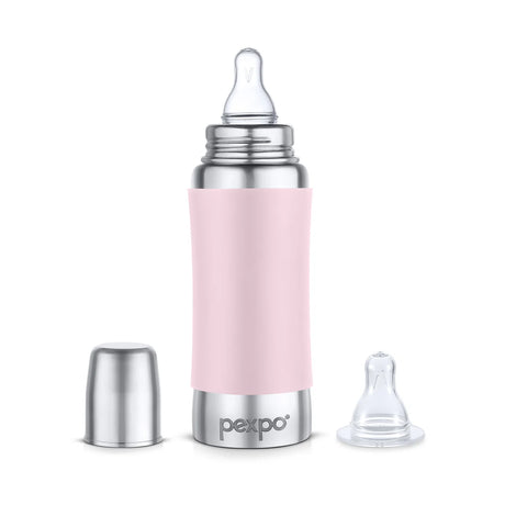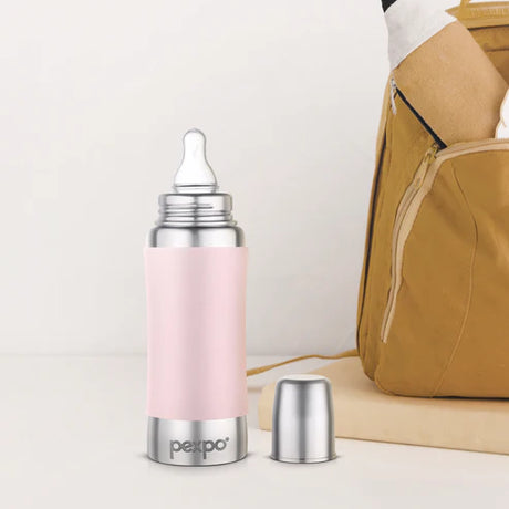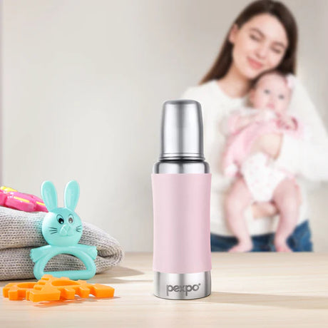 Pexpo Jack & Jill Stainless Steel Feeding Baby Bottle 250 ML Silver Pink