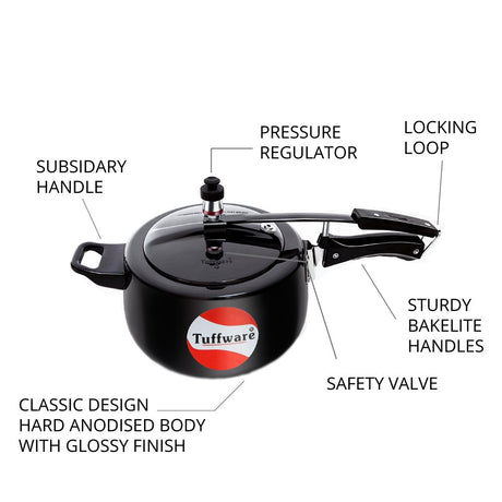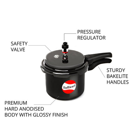 Tuffware 5 litres Hard Anodised Aluminium Inner Lid Classic Cooker,Black