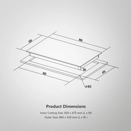 ALN 865 – 86cm Built-in Hob with 5 Heavy-Duty Brass Burners & Auto Ignition