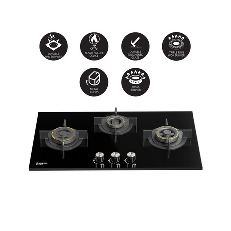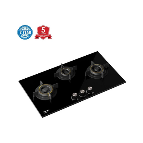 CRYSTAL NOIR 823 Built-in Hobs 3 Full Brass High Efficiency Burners-Black