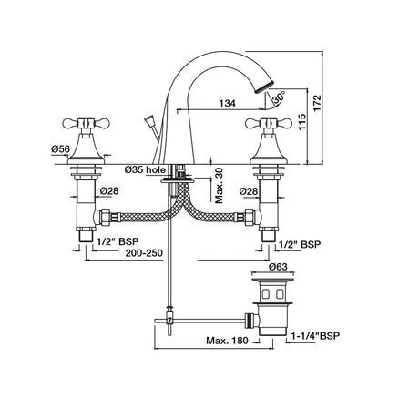 QQP‑CHR‑7191PM 3‑Hole Basin Mixer with Pop‑up Waste