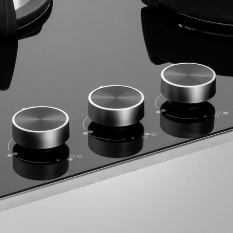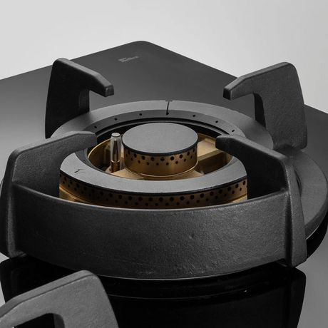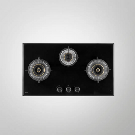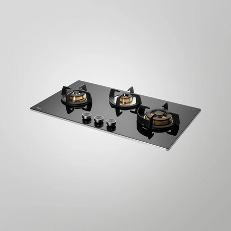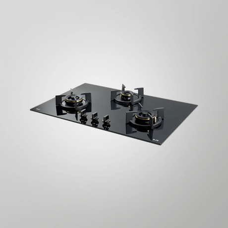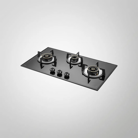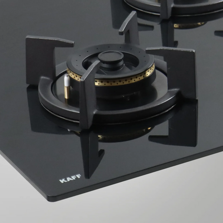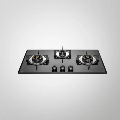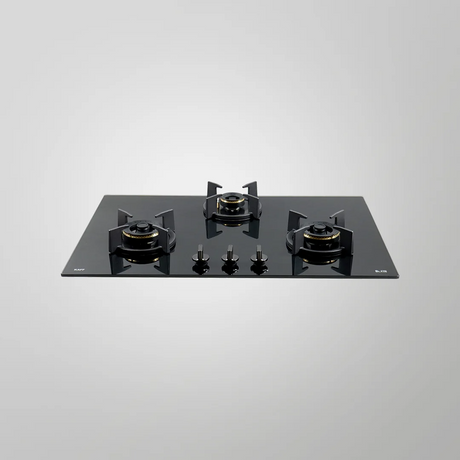 CTQ 77 3B AI 77cm 3 Burner Auto Ignition Cooktop with Black Tempered Glass & Brass Burners
