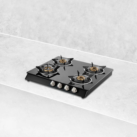 CTB584BAI – 4-Burner Auto Ignition Gas Stove | High-Efficiency Brass Burners | Black Tempered Glass
