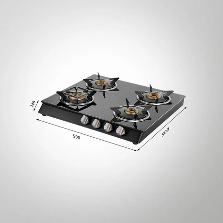 CTB584B – 4-Burner Manual Ignition Gas Stove | High-Efficiency Brass Burners | Black Tempered Glass