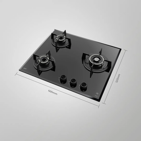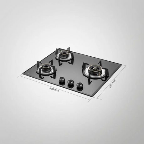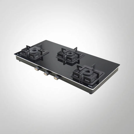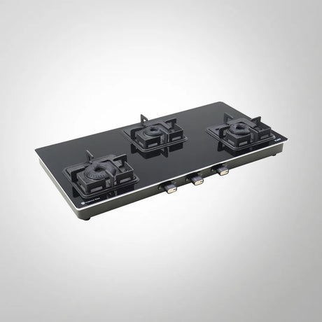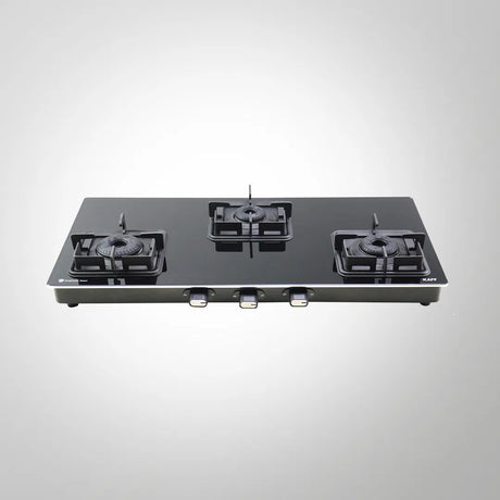 CTQ 77 3B 77cm 3 Burner Manual Ignition Cooktop with Black Tempered Glass & Brass Burners