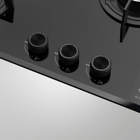 Altius FS 390 90 cm 3 Burner Hob – Full Brass Burners, Gunmetal Knobs, 538.66.628