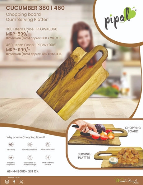 Cucumber Acacia Wood Chopping Board / Serving Platter 380mm