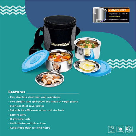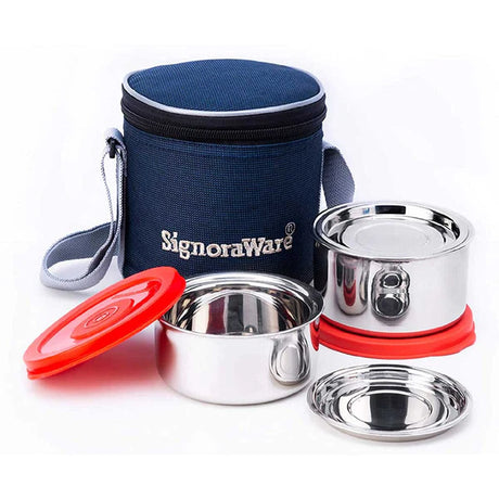 Signoraware Executive Twin Wall Small Steel Lunch Box Color: Red, Blue