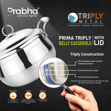 Prima Triply Belly Casserole With Lid – 2.9L, 18cm