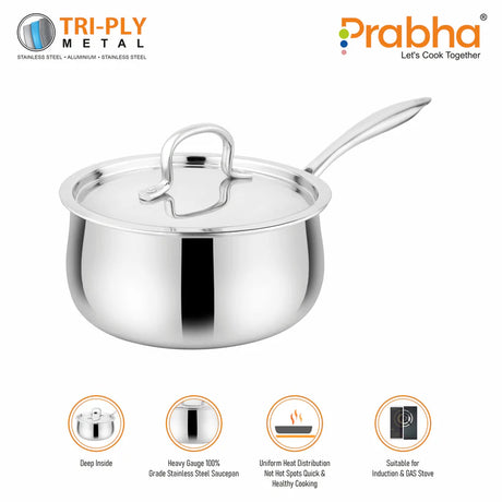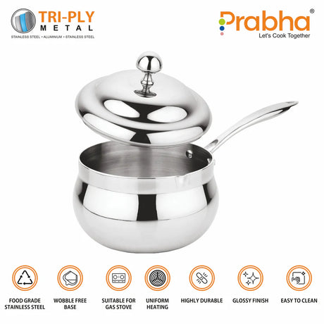 Prima Triply Kalash Saucepan With Lid – 1.3L, 14cm