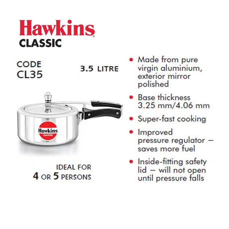 Hawkins Classic Aluminum Pressure Cookers 3.5 Litre : CL35