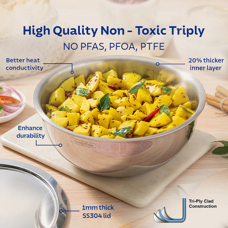 Tramontina Aeion 22cm Triply Tasla with SS Lid