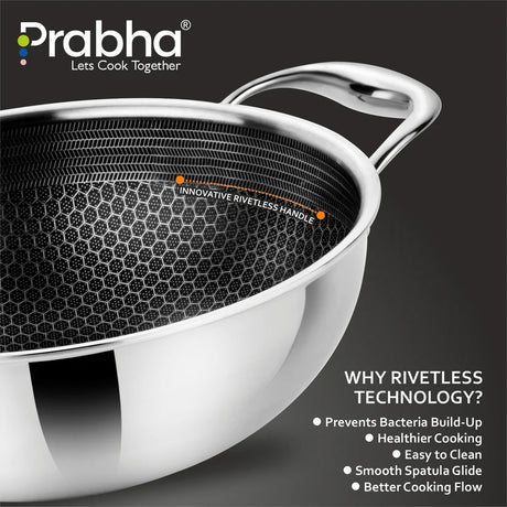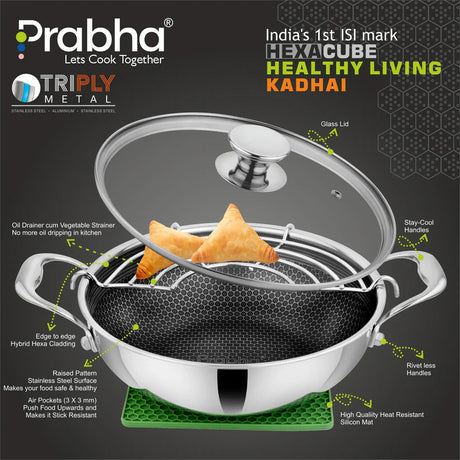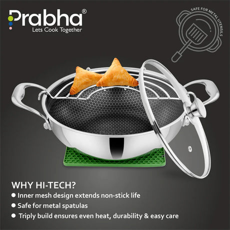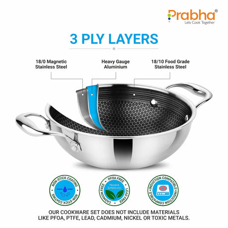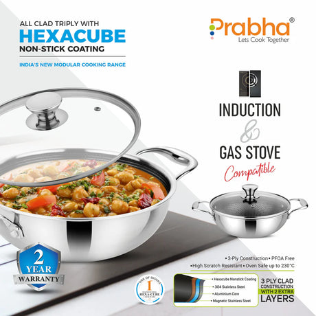 Tri-ply Hexa Cube Kadhai With Lid – 4.3L, 28cm