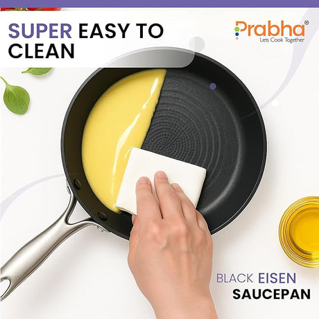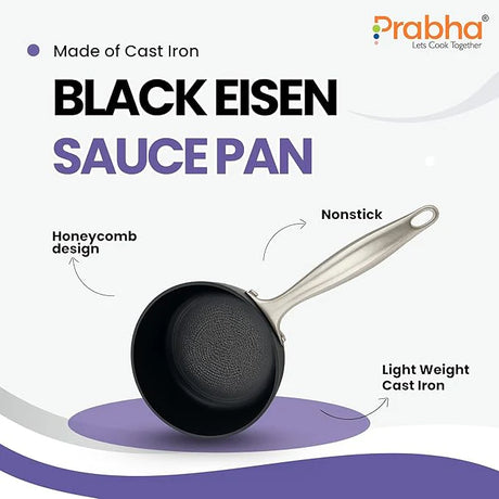 Prabha Black Eisen Cast Iron Saucepan With Steel Handle