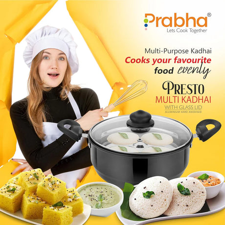 Prabha Elante Tri-Ply Kadhai With Glass Lid – 0.9L, 16cm